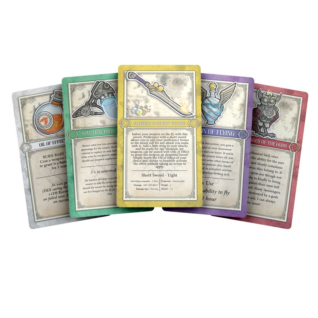 The Deck of Wondrous Items is a pack of 78 Tarot-sized unique item/lore cards for DnD. Designed to blend perfectly with your games with fully illustrated home brew items to help heighten your experience, with a few familiar items thrown in with a wondrous twist!